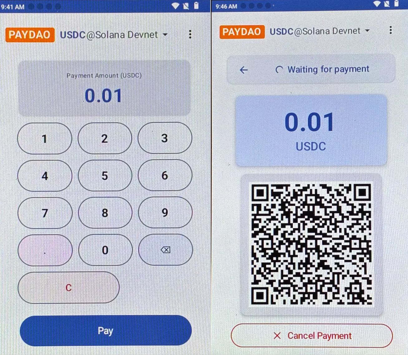 Click Back to return to the PAYDAO application interface.